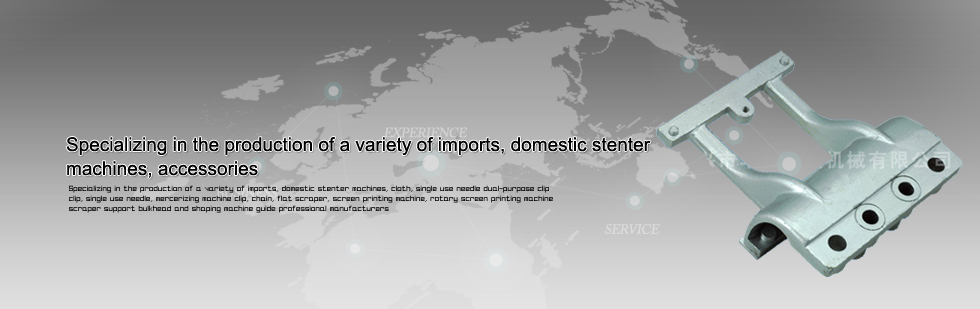 Our company is specialized in producing dual purose clips, solo-purpose clips, chains, pin plate holder, slideway that are used on imported and domestic stenters, setting machines and mercerizing. And scraper, scraper bracket, end-ring are used on printing machines.